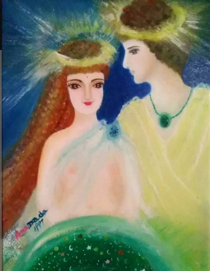 在這樣天堂的宇空裡,星球裡有一顆醞釀千萬億年的母球,母球裡有一顆龍珠,龍珠裡有一個小天體(小龍女)她開始蠕動著,然後孕育著小龍珠的母球就濆裂的展開了一個天球的世界。 以下的情景請閱覽舊檔(一)有最原始的答案《妲妲與旯旯》。